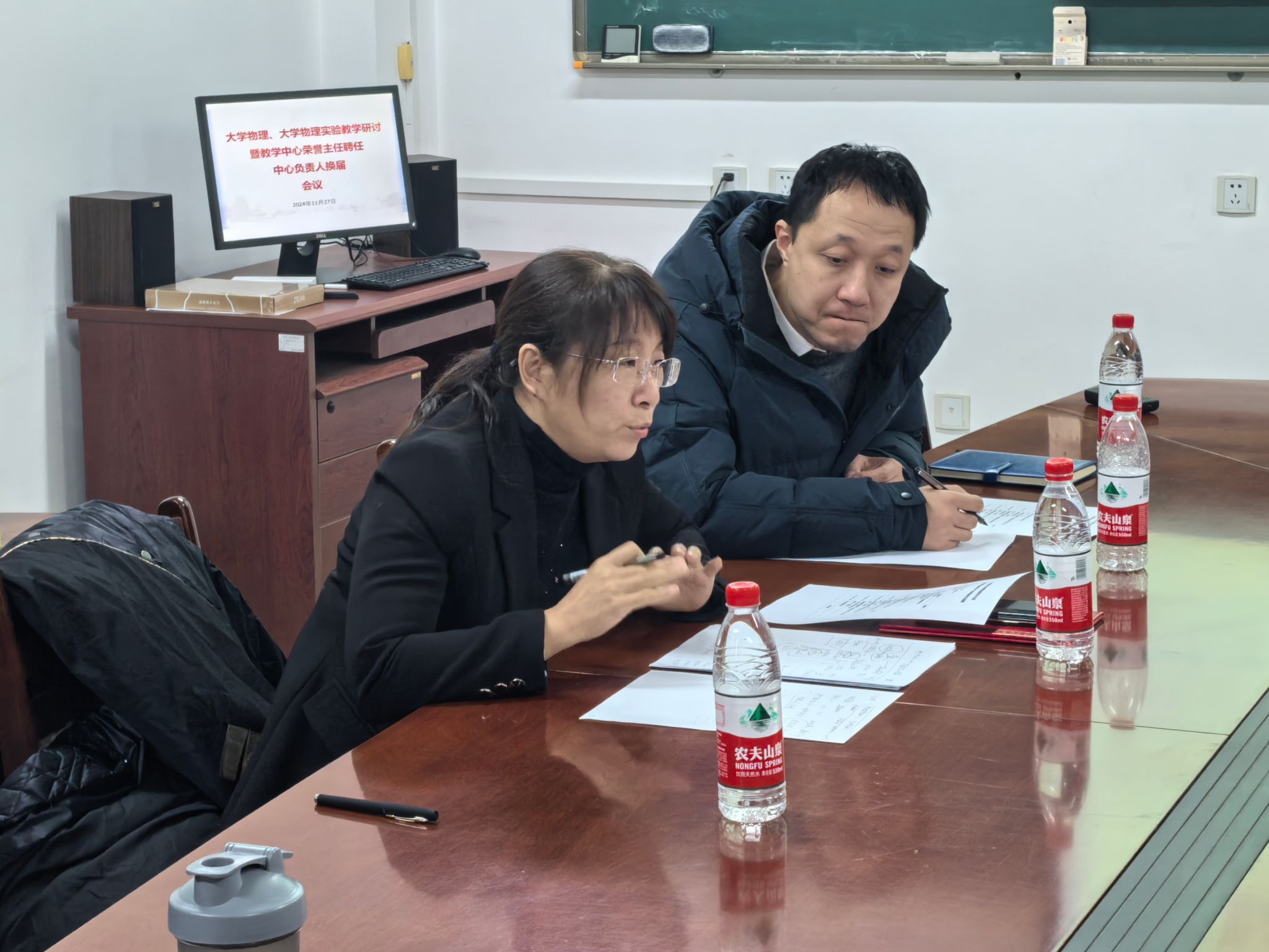 会上进行了大学物理教学中心负责人换届工作。李建东为中心常务副主任,白洪亮、王淑芬、吴兴伟为中心副主任。各中心副主任分别对自身分管领域工作进行了详细的介绍。
