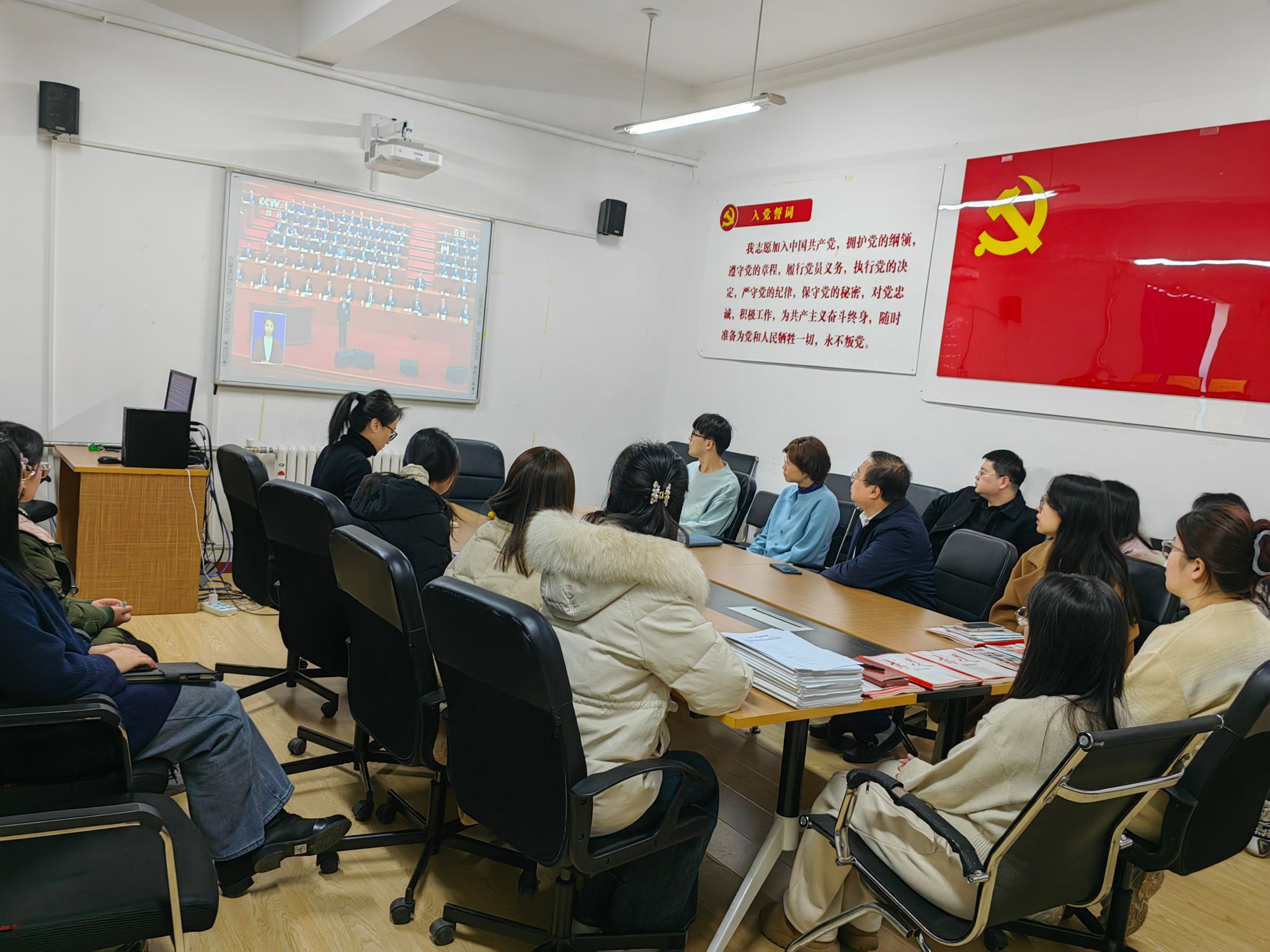 2025年3月5日上午9时,第十四届全国人民代表大会第三次会议在北京人民大会堂隆重开幕。物理学院党委组织学院党员干部在物理楼422会议室集中观看开幕式直播,认真聆听国务院总理李强作政府工作报告。学院党委委员、各党支部书记和党员代表参加活动,其他师生通过直播形式自行观看。