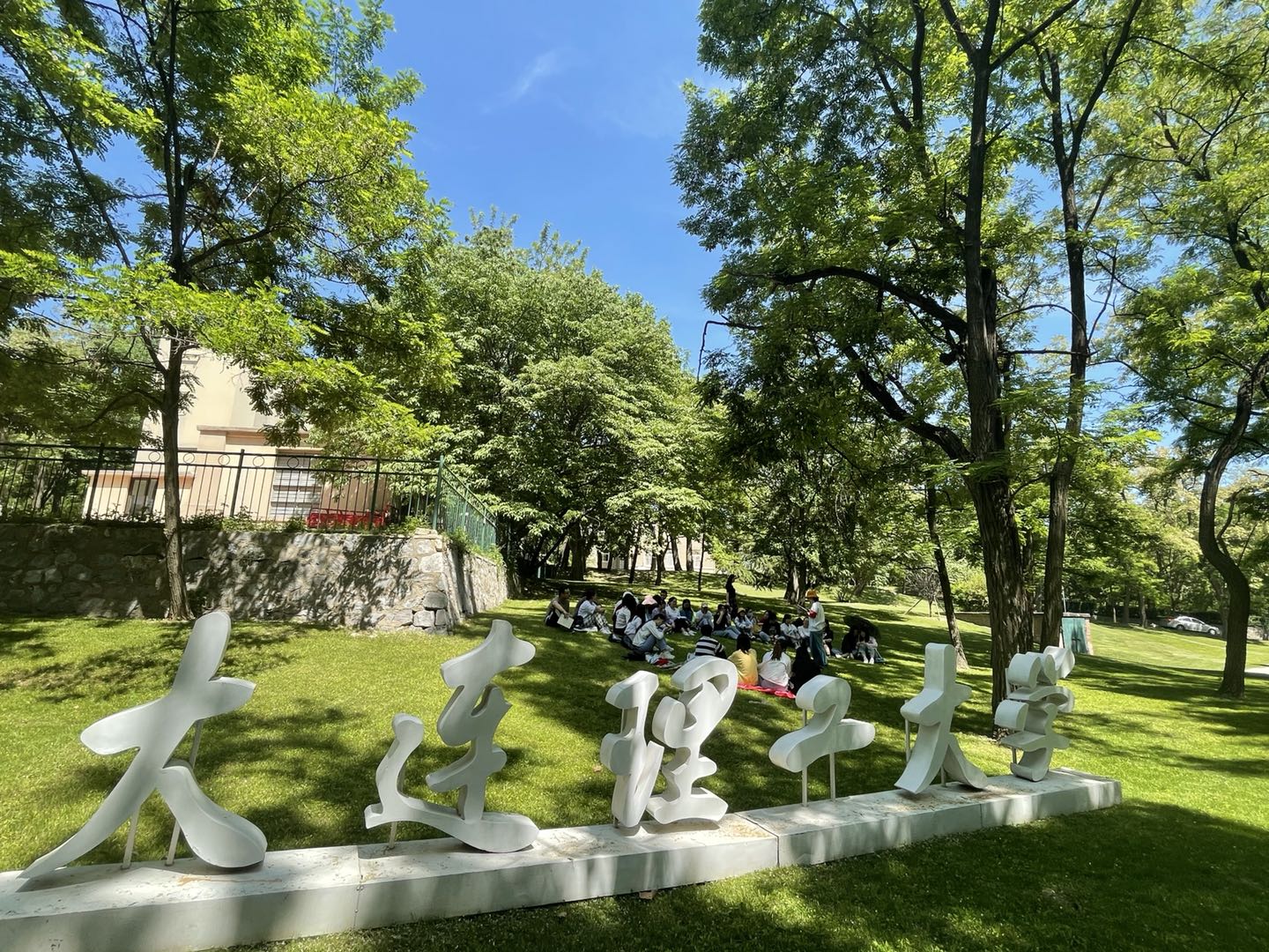 活动在学院东侧的草坪上举行,树荫下近40名同学围坐一圈。活动首先由8名党员、团员分享关于毛泽东、周恩来、邓小平、刘少奇等共和国领袖的党史故事,带领大家领略这些享有崇高威望的卓越领导人、久经考验的共产主义战士们的胆略和睿智。