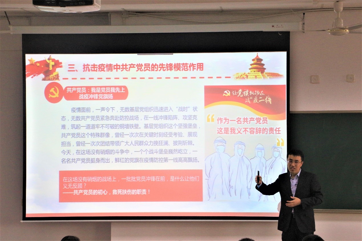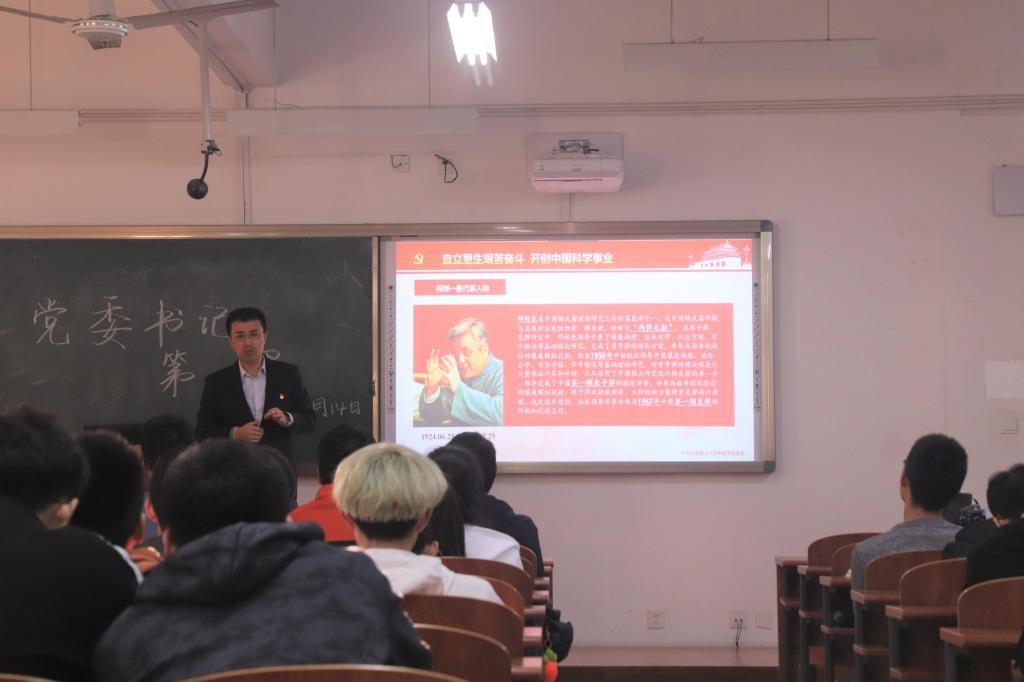 2020年10月14日下午15:30综合教学2号楼A201,党委书记王正汹教授为2020级学生上一堂主题为“百年未有之大变局,中华民族伟大复兴” 的党委书记第一课。他从百年前说起,生动而简明地讲述百年来共和国经历的风风雨雨和光辉历程,让同学们深刻地意识到自己所处的历史节点变局之大,自己肩上责任之重。王正汹书记强调:“改革开放奋发图强,科学事业建立新功”,鼓励2020级新生奋发图强,响应国家号召,在科学事业上攻坚克难,不断前进。