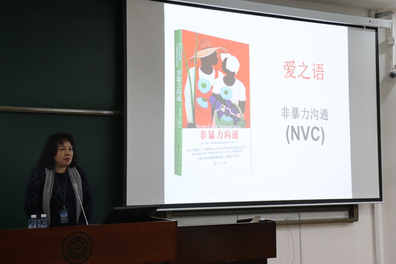 2020年11月18日下午14:00综合教学楼1号楼251,大连理工大学心理健康教育与咨询中心主任胡月教授,为物理学院20级学生开展主题为“‘爱之语’—非暴力沟通”的心理讲座。胡月老师在讲座开始从几个小笑话切入,与现场同学们沟通讨论日常交流语言的艺术。讲座中,胡月老师与现场同学互动,生动形象地展示人际中的三种相处关系。她向同学们阐述非暴力沟通,让同学们意识到人际交流中非暴力沟通的重要性,大学生活人与人之间更要用非暴力沟通来搭起稳固的桥梁。