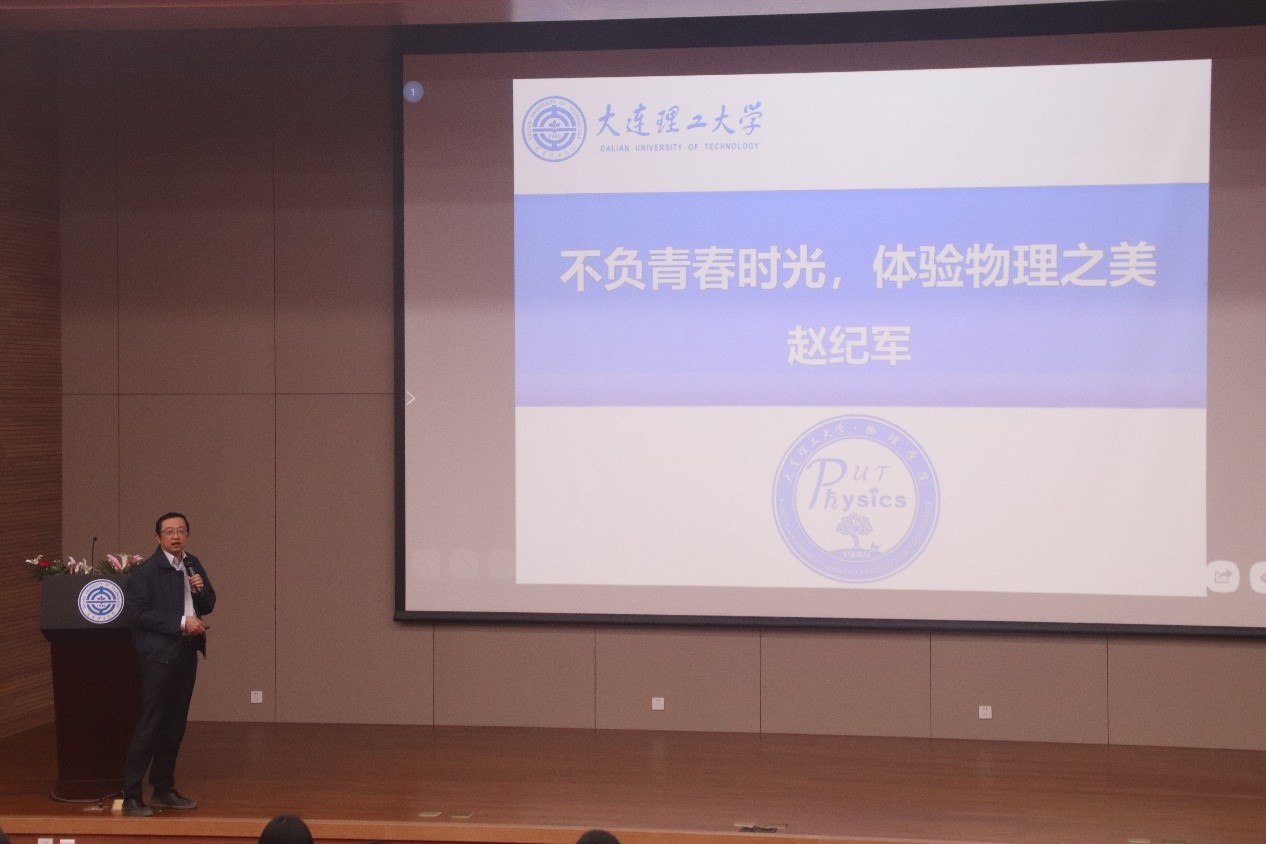 2020年9月30日下午15:00,物理学院院长赵纪军教授在伯川图书馆报告厅为新生讲授院长第一课。在讲座中,赵纪军院长首先向同学介绍物理学院基本概况和物理专业基本情况,从学院历史再到师资力量,赵院长都与同学们细细介绍。接着他对同学们提出期望和要求:“珍惜时光,全面发展,加强自控能力、培养高尚品格”,年轻人要朝气蓬勃,不忘初心,从点滴做起。在入学开始阶段赵纪军院长的谆谆教导就为新生指明未来发展的道路。